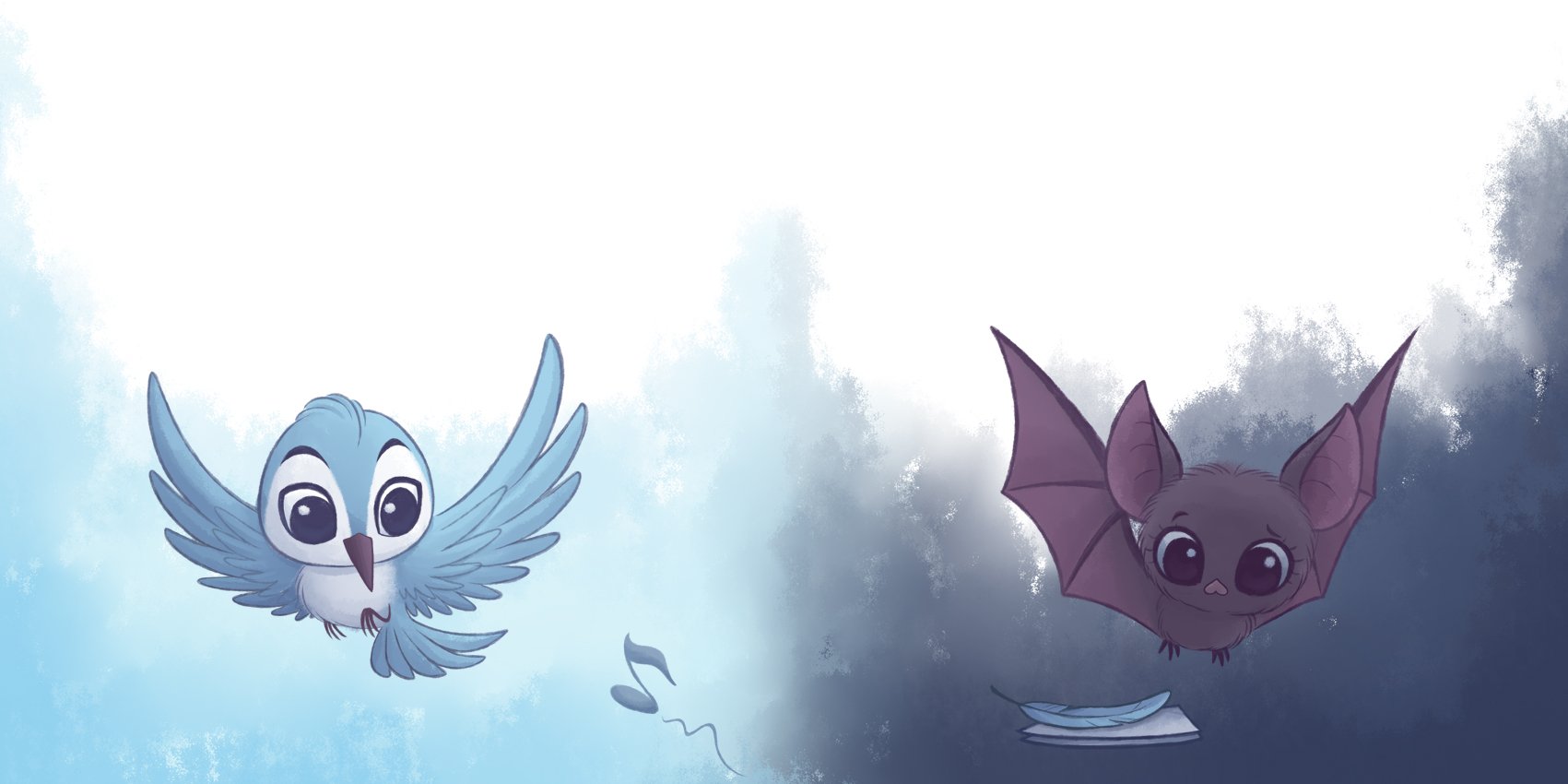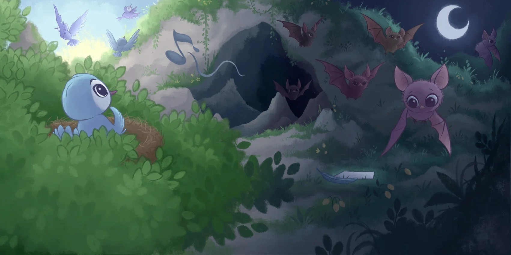 Bird wrote the crying thing a note. And when Little Bat flew at night, she grew curious.